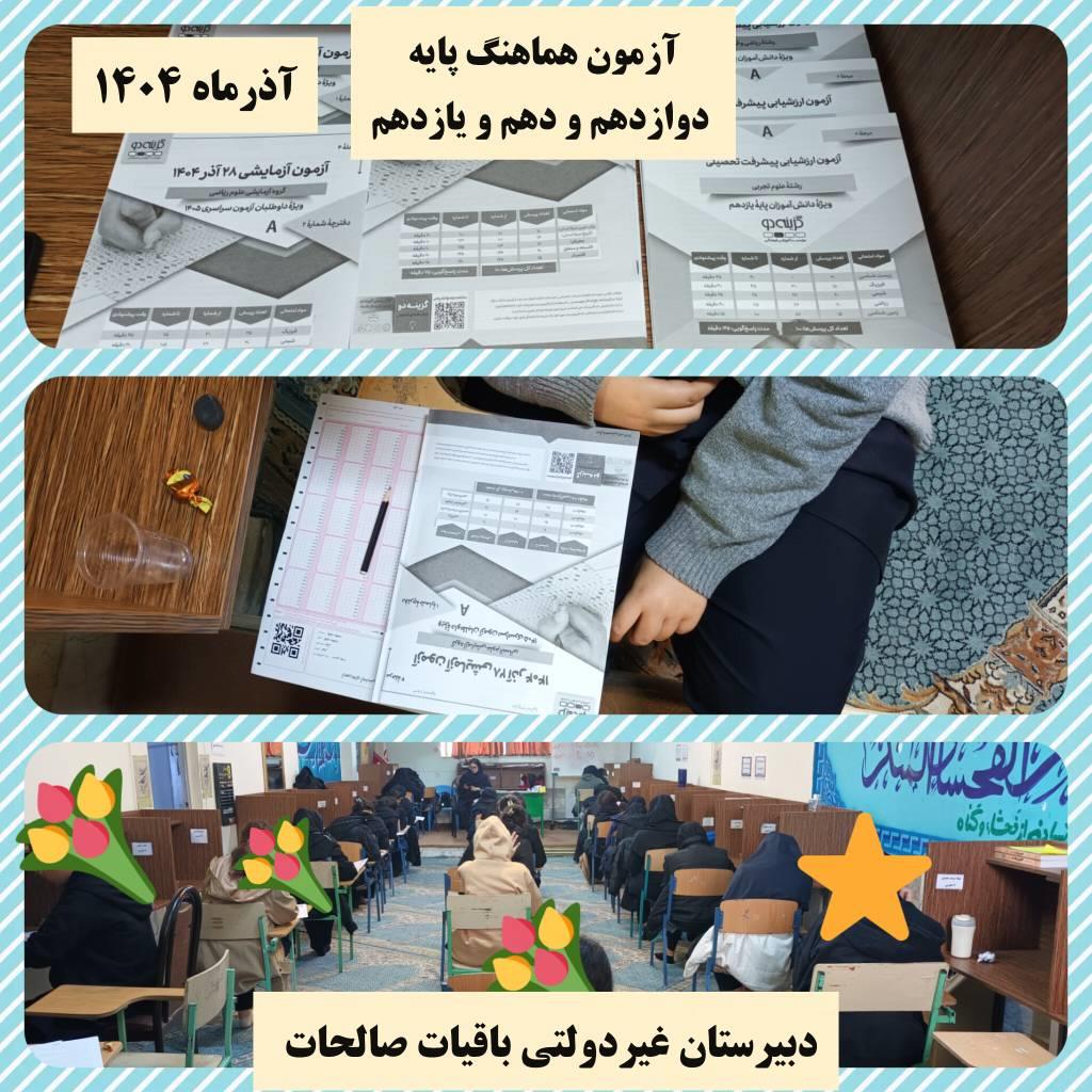 آزمون های ماهانه دبیرستان غیردولتی باقیات صالحات